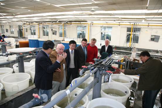 会后,Galway市代表团在金显仕副所长的陪同下参观了黄海所即墨水产遗传育种中心,听取了孔杰研究员对遗传育种中心所开展的工作、实验设施及中国对虾遗传育种情况介绍,双方还就各自感兴趣的问题进行了广泛交流。