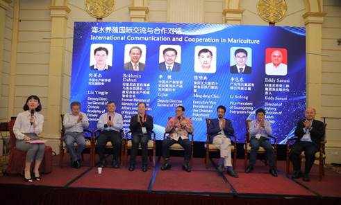 在海水养殖国际交流与合作对话环节,来自中国、泰国、印度尼西亚、亚太水产养殖中心网的专家、学者和企业家就水产养殖合作领域与模式分享、中国及国际市场需求变化分析、科技创新、金融服务与产业发展进行了分享、互动与交流。