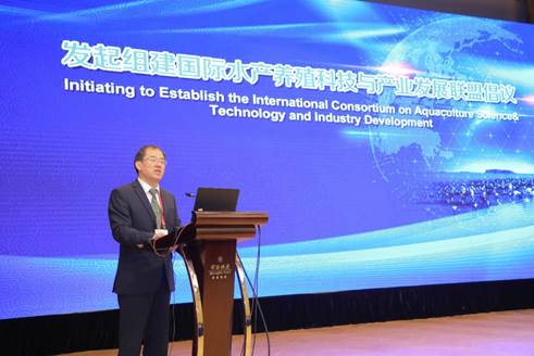 中国水产科学研究院副院长刘英杰介绍发起组建《国际水产养殖科技与产业发展联盟》倡议