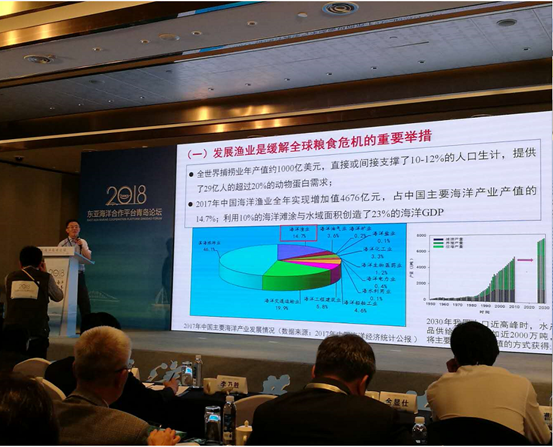 黄海水产研究所所长金显仕应邀出席论坛开幕式并作了题为《科技创新助力海洋渔业发展》的主题演讲,回顾了中国海洋渔业发展取得的世人瞩目的成就,概述了中国海洋渔业的发展之路,并展望了积极发展碳汇渔业、加快推进深蓝渔业建设、稳步推进渔业现代化、拓展极地渔业等中国渔业科技发展蓝图,强调要进一步加强科技推动渔业可持续发展,促进渔业增长方式转变和结构调整,为保障国家食物安全和促进生态文明建设作出新贡献。