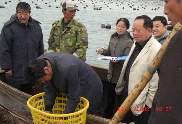 IV> 11月24日,黄海水产研究所邀请有关专家,对黄海所和山东省寻山集团有限公司共同承担的“鲆鲽类网箱养殖技术开发”课题进行了现场验收。