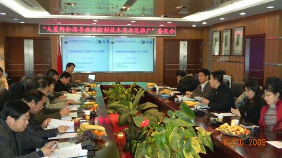 2009年12月31日,山东省科学技术厅组织专家对黄海所主持完成的“大菱鲆疾病综合控制技术及示范推广”和“养殖刺参疾病防控技术及示范推广”两项成果进行了鉴定。验收委员会由中国海洋大学、中科院海洋所、国家海洋局一所、山东省海水养殖研究所等单位的专家组成。黄海所王清印所长到会并致欢迎词。