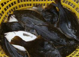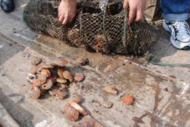 该课题利用前期建立的网箱养鱼物质输运模型,在山东省荣成桑沟湾寻山渔业集团养殖海域开展了鱼-贝-藻多营养层次综合养殖模式示范研究。试验网箱养殖数量为150个,规格为5×5×2 m3,总面积 5000 m2,养殖牙鲆已经达到商品规格,平均体长 35.1 cm,平均体重 657.1 g,养殖产量394.3 kg/个网箱;龙须菜养殖面积为100亩,已经开始收获,平均每绳重量 13.3 kg/绳,亩产量 5333.3 kg/亩。扇贝养殖面积50亩,三龄扇贝已经收获,现在多为二龄扇贝,平均壳长 57.3 mm,壳高51.0 mm,平均湿重23.3g/个,亩产量2125.0 kg/亩。网箱养殖牙鲆体色正常,活力强,成活率98%以上;龙须菜颜色正常,无附着生物,生长良好;扇贝壳色正常,活力好,成活率95%以上。