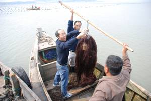 专家组认真听取课题组工作总结汇报;查阅生产及实验记录;现场查看网箱牙鲆、龙须菜和扇贝的养殖效果;现场随机取样,测定了牙鲆的体长、湿重,龙须菜每绳湿重,扇贝壳长、壳高和湿重,统计养殖面积,并对养殖生物的生长状况和现场实验效果作出评价。一致同意通过验收。