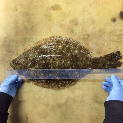 专家组听取了课题负责人的汇报,实地调查了鲆优2号的养殖情况,进行了现场核查和取样测量,形成验收意见如下:2017年4月至5月在黄海水产公司生产牙鲆“鲆优2号”受精卵共16 kg, 自2017年11月起,在黄海水产公司示范养殖4610尾,至验收时成活3400尾,成活率为74%;随机取样30尾测量,平均全长为42.9cm,平均体重为1005.8g,最大个体接近1500克;充分表明“鲆优2号”牙鲆新品种具有生长速度快和养殖成活率高的优点。