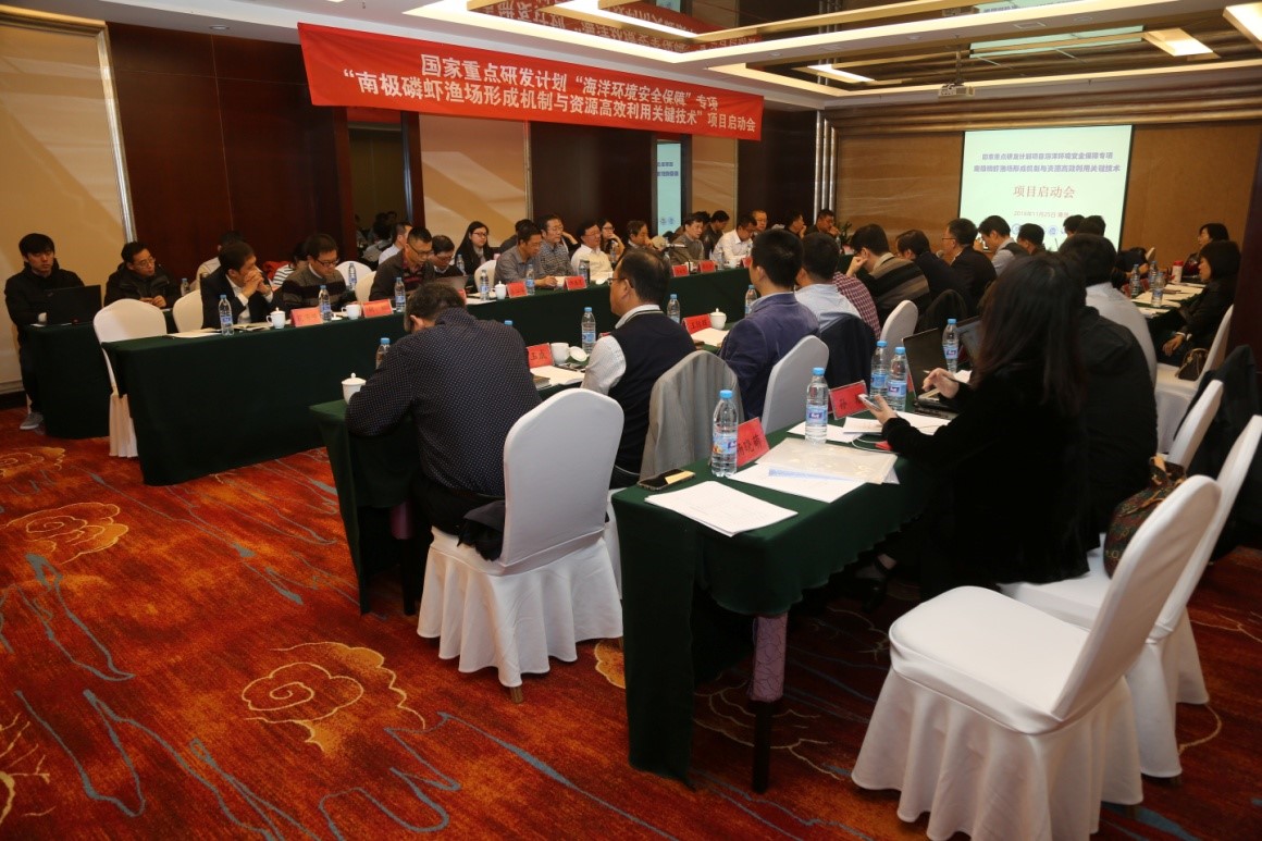 11月25日,由黄海水产研究所李显森研究员为首席科学家的国家重点研发计划项目“南极磷虾渔场形成机制与资源高效利用关键技术”在青岛顺利启动。中国水产科学研究院科研处处长方辉,大连海洋大学副校长宋林生,华东理工大学教授张元兴,浙江海洋大学副校长徐汉祥,中国船舶重工集团公司第七〇一研究所主任祝海勇,烟台大学教授邱盛尧等相关单位领导和专家以及上海海洋大学,大连工业大学,辽渔集团有限公司,中国水产科学研究院东海水产研究所、渔业机械仪器研究所等项目参与单位主管领导及项目参与人员代表等60余人出席了会议。会议由黄海水产研究所党委书记赵宪勇主持。