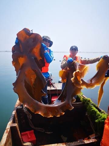 “玉带1号”海带是在现代农业产业技术体系藻类体系离岸式养殖岗位专项(CARS-50)资助下培育的海带新品系?!坝翊?号”海带除了具有优质、高产的优良性状外,其突出特征是藻体柔韧性高,假根较发达,抓握力强,在离岸深水区养殖测试发现,其脱苗率和破损率低,表现出较强的抗风浪能力。该新品系对推动我国海带养殖产业向离岸深水区发展、拓展海藻养殖新空间奠定了良好的基础。