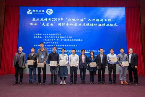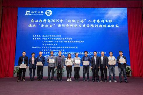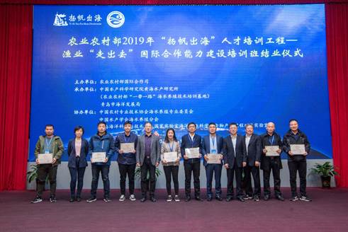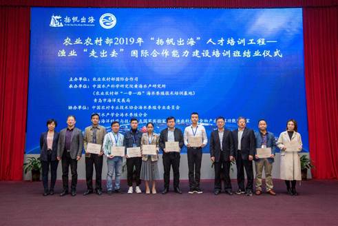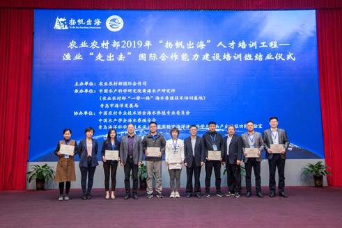 10月28日至11月1日,由农业农村部国际合作司主办,中国水产科学研究院黄海水产研究所农业农村部“一带一路”海水养殖技术培训基地和青岛市海洋发展局承办,中国农村专业技术协会海水养殖专业委员会、中国水产学会海水养殖分会、青岛海洋科学与技术试点国家实验室海洋渔业科学与食物产出过程功能实验室协办的2019年农业农村部“扬帆出?!比瞬排嘌倒こ獭嬉怠白叱鋈ァ惫屎献髂芰ㄉ枧嘌蛋圄呱嬗媾┘夹涸鹑斯屎献髂芰ㄉ枧嘌蛋嘣谇嗟撼晒侔?。来自辽宁、上海、江苏、浙江、福建、山东、广东和海南等8个省市的60多名渔业行政主管部门管理人员和渔业“走出去”重点企业主要负责人在青岛进行了4天的培训学习。