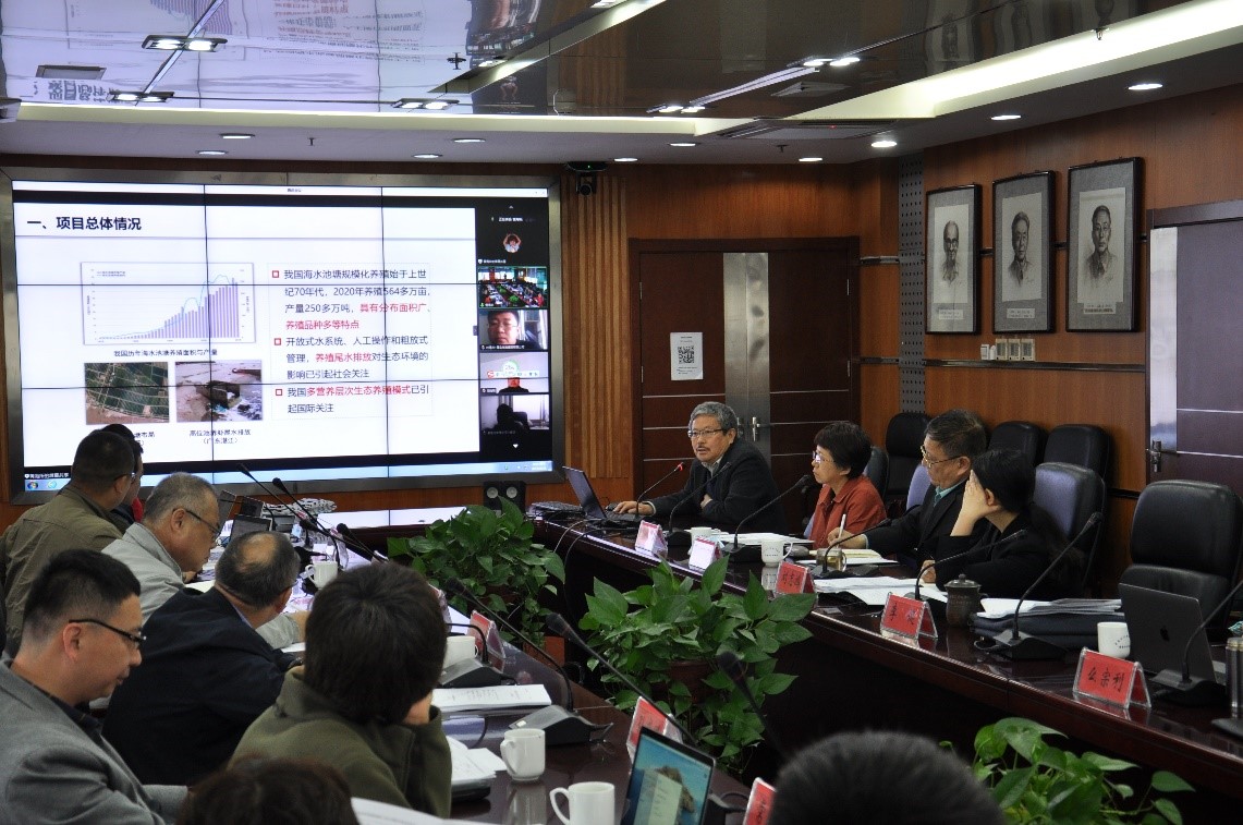 会议开幕式由黄海水产研究所科研处处长刘志鸿主持?;坪K芯克彼だ罱〈硐钅壳M返ノ恢麓?,他强调,项目和课题要认真落实科技部重点专项的“绩效四问”,以目标成果为导向,加快生态工程化养殖共性关键技术研发,推动产业转型升级和提质增效,希望各位专家在项目实施过程中多提宝贵建议,为项目顺利实施和完成预期目标保驾护航。