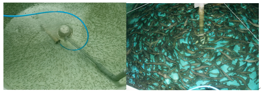 验收专家组听取了项目组工作汇报,审阅了有关资料,查看了养殖、育苗现场,形成验收意见如下:①项目实施单位西藏亚东鲑鱼生态水殖有限公司工厂化循环水养殖系统保有4龄以上亲鱼0.65万尾;2~3龄商品鱼2.1万尾,4龄以上商品鱼1.1万尾。②共采集受精卵347.8万粒,受精率90%,产后亲鱼成活率95%。现有鱼苗约35万尾,平均全长51.59±4.73 mm。③制备了杀鲑气单胞菌注射疫苗1种、口服微球疫苗2种。注射免疫2龄鱼0.59万尾,口服免疫3龄鱼1.1万尾。4个半月后免疫成活率98%。④优化设计了苗种培育桶,径深比由1:1调整为2:1,出水方式改为中心管回水。⑤开发了援建鱼病专家远程诊断系统1套,实现了视频交互、微观图像实时共享和图文资料的交流功能。
