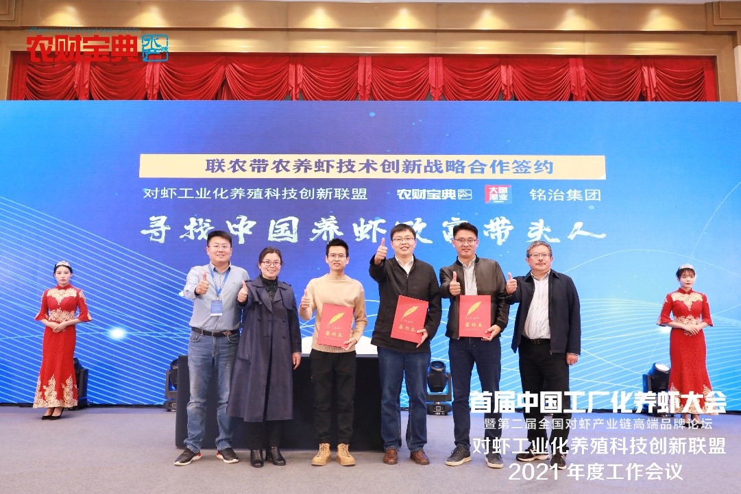 会后,对虾养殖科技创新联盟、农财宝典-大国渔业、铭治集团联合举办了主题为“寻找中国养虾致富带头人”的签约活动,希望从产业一线总结提炼出一套科学、专业、可复制的养殖经验,服务广大养殖从业人员,联农、带农科技致富。