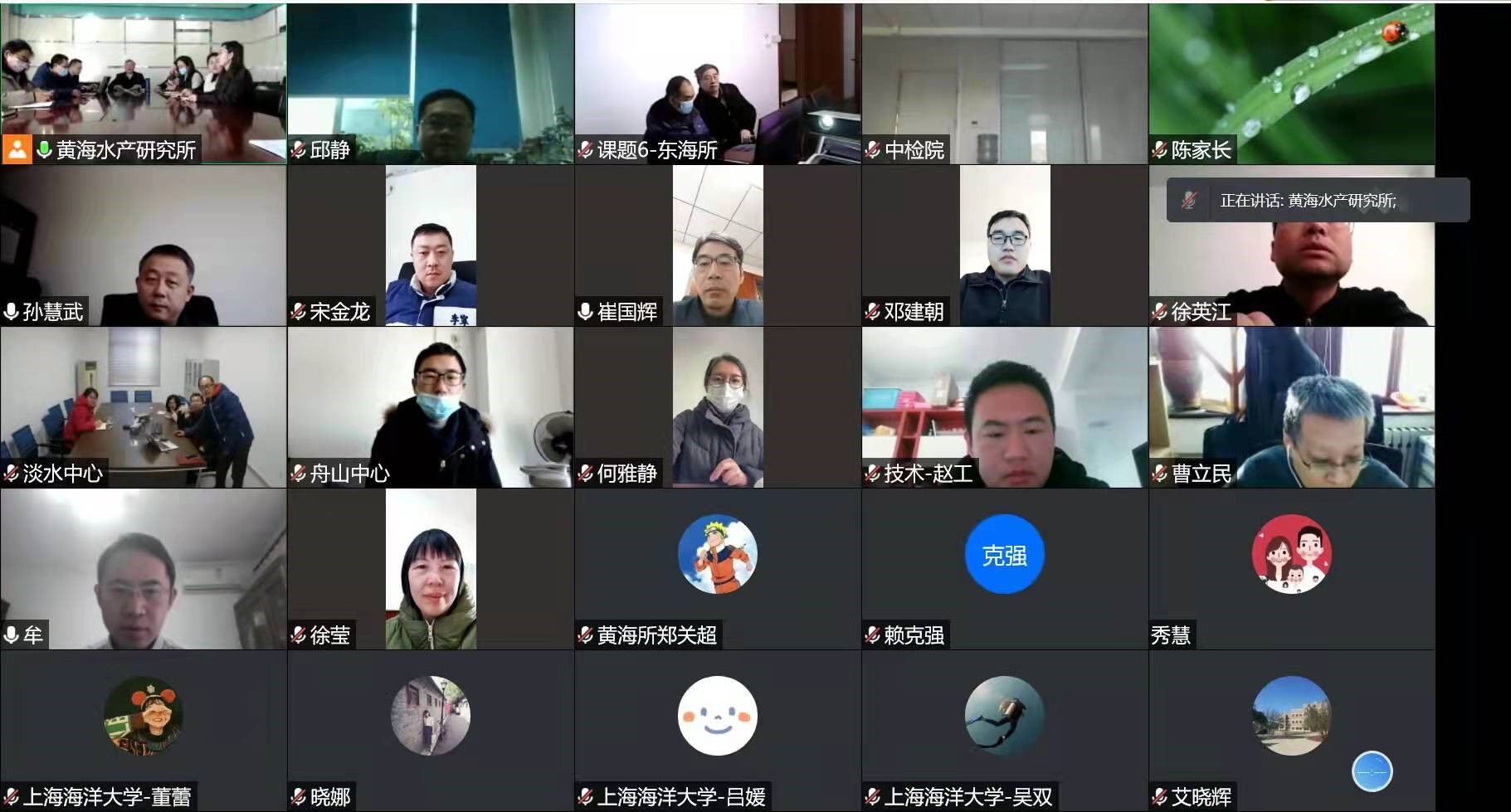 1月14日,为迎接结题和绩效评估,国家重点研发计划“水产品全链条关键危害物的迁移转化规律与安全防控技术研究”项目以视频会议形式组织召开绩效评估工作布置会?;嵋橛上钅渴紫泄蒲а芯吭夯坪K芯克载剐阊芯吭敝鞒?,中国水产科学研究院副院长崔国辉、中国水产科学研究院质量与标准研究中心主任孙慧武出席会议并讲话,黄海水产研究所科研管理相关部门负责人、各课题主持人及项目骨干60余人参加了会议。