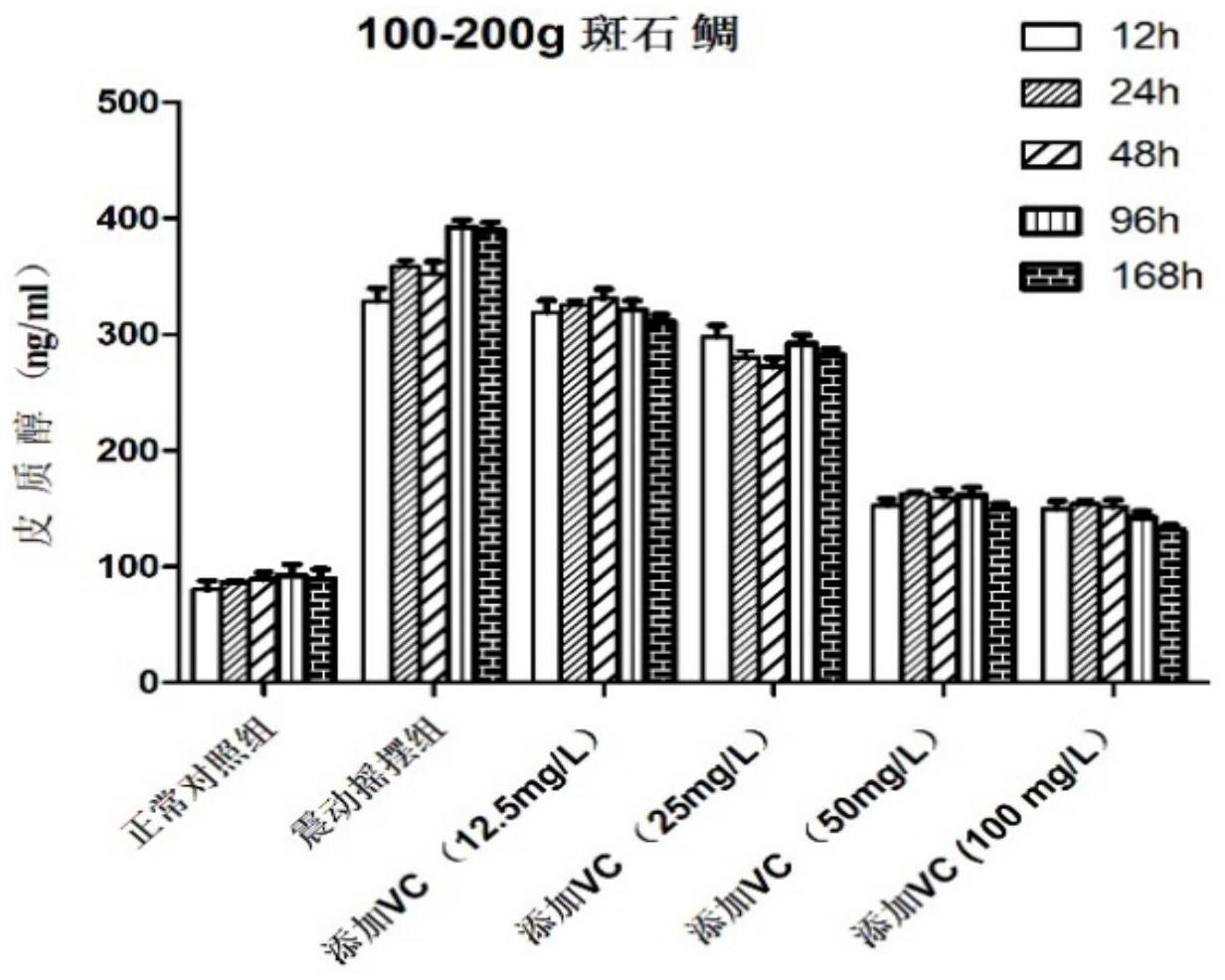 本发明通过在运输前停食暂养,并根据斑石鲷规格在运输过程中的水体中添加适宜的抗应激制剂来减少其耗氧率和排氨率、缓解胁迫应激,提高成活率;运输抵达目的地后,饲料中添加胆汁酸,同时限食饲喂,待生理状态稳定后,进入正常饲养管理,从而有效的减少了斑石鲷在运输过程中产生的应激反应,而且能够更快的恢复最佳生理状态。