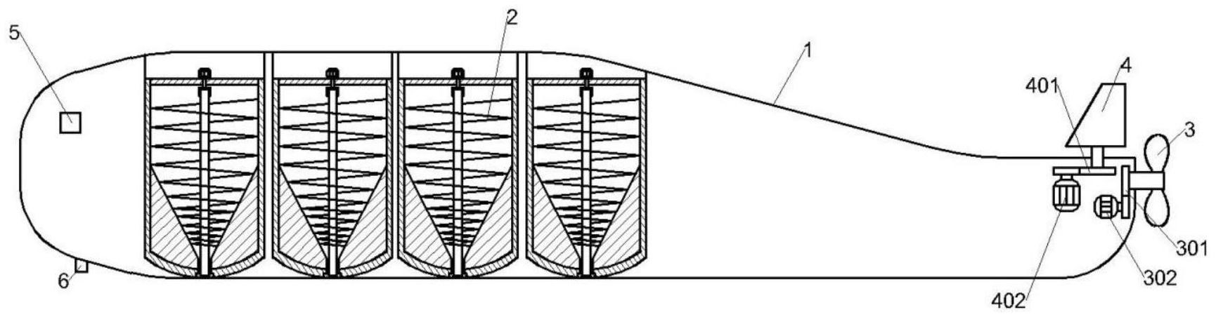 本发明涉及海洋渔业配套设施领域,尤其涉及一种潜水巡航式投饵装置,包括外壳,所述外壳内部设置有至少一个饵料投放组件,所述外壳外侧设置有潜水结构,所述外壳后端设置有驱动组件,所述外壳后端上方设置有转向组件,所述外壳的前端内部设置有控制??椋隹刂颇?榈缧粤佑惺菔占??,所述控制??榉直鹩胨龆贤斗抛榧?、驱动组件、转向组件电性连接;所述数据收集??橛糜诩嗖馑禄肪巢⒐鄄焖虑榭觥?/p>