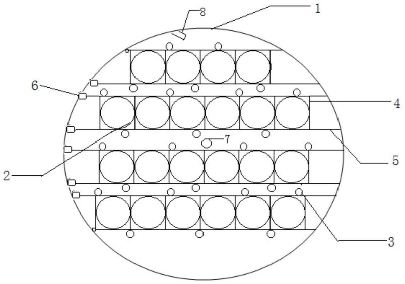本发明公开了一种莱氏拟乌贼受精卵孵化系统及使用方法,属于水产养殖领域,所述系统包括孵化池、孵化筐、固定支架;养殖池内摆放固定支架,将孵化筐固定在固定支架上,固定支架周边安装有浮球;所述系统能够防止孵化筐因冲撞造成倾斜而使受精卵相互挤压,减少了受精卵发霉腐烂,并充分利用了孵化水体空间。