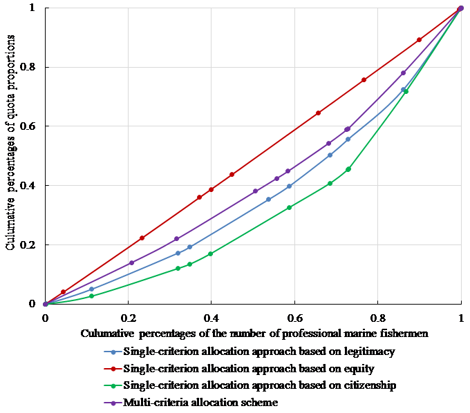 公平合理的配额分配是TACs有效实施的一个重要环节,本项研究构建了一种基于相对剥夺系数的捕捞配额分配方法,并以我国11个沿海省份为例进行了实证研究,与传统的单准则分配方法和等权重多准则分配方法相比,基于相对剥夺系数的捕捞配额分配方法在更加公平合理的分配捕捞配额方面具有明显优势。该研究为捕捞配额分配提供了一个可行且更为公平的替代方法,也为渔业政策制定者公平合理的分配捕捞配额提供科学参考。