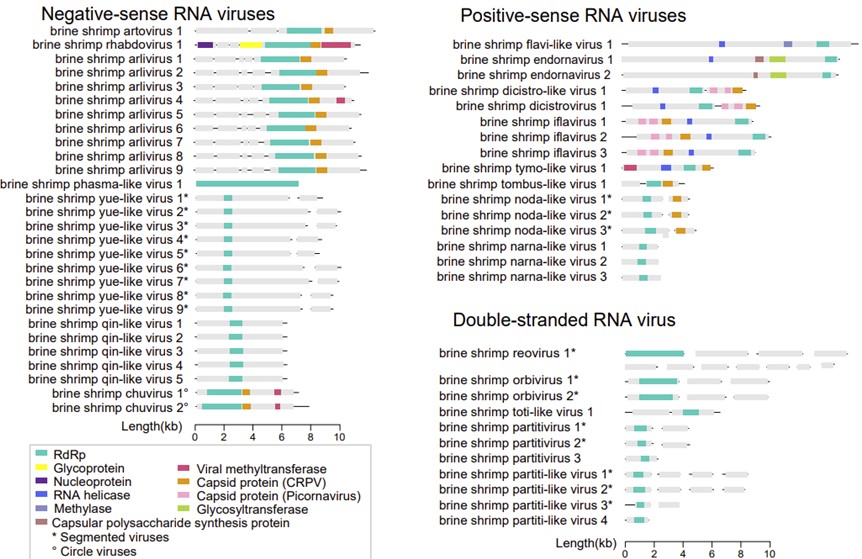 图3 本研究发现的RNA病毒基因组结构图