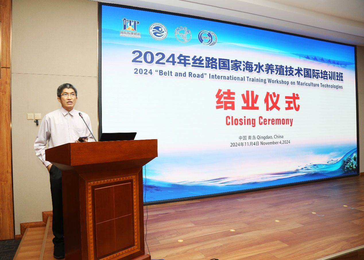 来自马来西亚登嘉楼大学的Kok Leong Lee研究员代表学员感谢培训班的精心组织与周到安排。他表示,中国在海水养殖技术方面的最新进展令人瞩目,今年是登嘉楼大学第7次派员参加此培训,培训不仅传授了科学知识和实践经验,还为全球水产养殖科技交流和产业合作提供了宝贵的平台。
