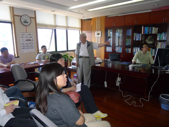 6月9日上午,应雷霁霖院士邀请,台湾鱼类分类学家沈世杰教授到黄海水产研究所进行交流访问,并做了题为“鱼类生物学与系统分类学”的专题学术报告。雷霁霖院士课题组成员、博士后以及研究生聆听了沈教授精彩的演讲。