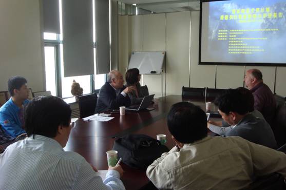 座谈会上,环境室主任马绍赛研究员向Mark教授介绍了环境室的科研情况,并重点介绍了“十五”、“ 十一五”期间黄海所在工厂化循环水高密度鱼类养殖的工程化技术方面所取得的成果。Mark D. Powell教授做了题为“循环水养殖系统中的多营养层次养殖”的学术报告,详细介绍了循环水养殖系统中总悬浮固体、氮、碳的迁移转化问题以及多营养层次水产养殖目前取得的进展与面临的挑战。Mark教授对黄海所在工厂化循环水高密度鱼类养殖的工程化技术方面所取得的成果表示了极大的兴趣,他认为中国的工厂化循环水养殖具有广阔的发展前景,相关研究将在国际上达到较高的水平。与会人员还就感兴趣的问题与Mark D. Powell教授进行了热烈的讨论,并就双方可能合作的领域进行了探讨。