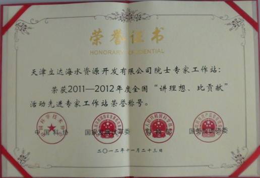 11月26日,由中国科协、国家发改委、科技部和国务院国资委联合举办的2011-2012年度全国“讲理想、比贡献”活动总结表彰大会在北京召开。大会对“讲理想、比贡献”活动中做出突出贡献的246个先进集体、50个先进专家工作站、199名科技标兵、199名优秀组织者进行了表彰?;坪K芯克胩旖蛄⒋锖K试纯⒂邢薰竞献髯榻ǖ摹疤旖蛄⒋锖K试纯⒂邢薰驹菏抗ぷ髡尽比倩?011-2012年度全国“讲理想、比贡献”活动先进院士专家工作站称号。