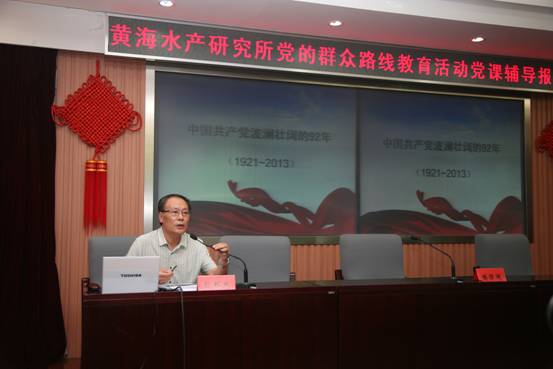 9月2日,黄海水产研究所举办党的群众路线教育实践活动党课辅导报告会。在青所领导,全体职工、学生代表参加了报告会。中国水产科学研究院党的群众路线教育活动第三督导组副组长、原东海所党委书记樊强国到会指导。报告会由金显仕所长主持。