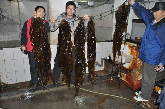 近日,黄海水产研究所邀请山东省海水养殖研究所、中国科学院海洋研究所、中国海洋大学、大连海洋大学和大连新碧龙海产有限公司的专家,在大连龙王塘对黄海所完成的“配子体克隆法繁育巨藻幼苗及养殖示范”进行了现场验收。