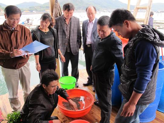 12月1日,黄海水产研究所邀请厦门大学、福建省水产研究所和山东莱州明波水产有限公司等单位的有关专家,在福建省东山县对主持的国家863计划项目“重要鲆鲽鱼类良种培育”( 2012AA10A408)和国家公益性行业(农业)科研专项“鱼类性别控制和单性苗种培育技术研究”(200903046)中培育出的牙鲆新品种“鲆优1号”的产业化养殖进行了现场验收。