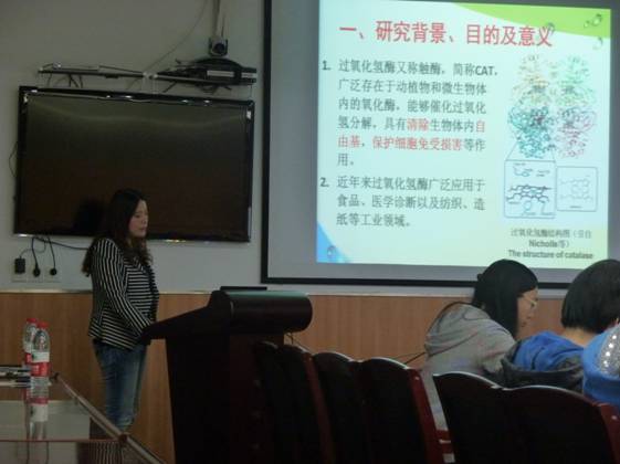 活动中,中国海洋大学的孙艳宾硕士以及黄海所付新华博士、梁忠秀博士分别作了学术报告,报告内容涉及生物材料、酶工程以及对虾养殖等。报告人围绕自身的研究领域,阐述了研究内容、方法和经验心得等,并与参会研究生展开了热烈讨论。