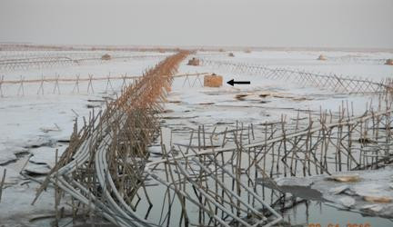 近几年,北方冬季出现持续极端寒冷天气,水温骤减,黄、渤海湾大面积冰封,给渔民造成不同程度的损失。为做好抗灾减灾工作,及时解除生产一线的冰灾危害,最大程度减少灾害造成的损失,黄海所有关专家每年都分别赴辽宁、河北、山东等地进行考察,深入养殖园区了解灾情,与当地渔民一起分析灾情、制定抗灾减灾方案和措施,并现场免费发放应对冰灾的书籍、技术宣传资料等。此外,黄海所专家采集受冻大菱鲆、海参等样品,进行了系统的冻伤组织学研究分析,探讨冻伤机理,为养殖基层提供专业性指导意见。