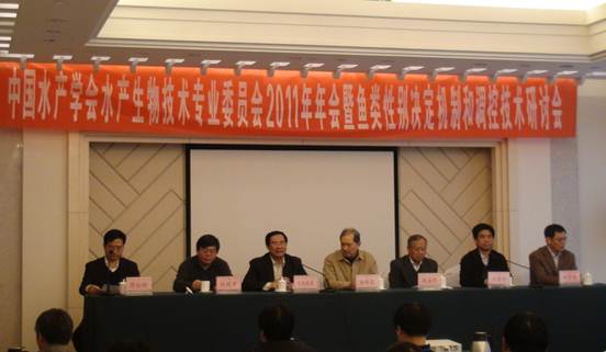 11月26-27日,中国水产学会水产生物技术专业委员会2011年年会暨鱼类性别决定机制和调控技术研讨会在青岛召开?;嵋橛芍泄Щ崴锛际踝ㄒ滴被嶂靼?,该委员会主任委员、黄海水产研究所陈松林研究员主持了大会开幕式。中国水产学会副理事长、秘书长司徒建通,中国科学院院士朱作言,中国工程院院士林浩然,黄海所所长王清印等领导和专家应邀出席本次会议。