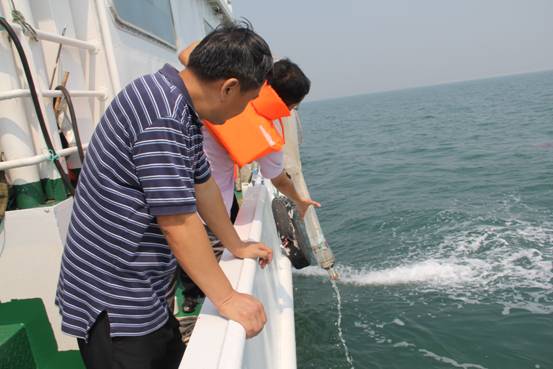 调查分两部分进行,一部分专家随“黄海星”考察船对胶南基地临近海域进行调查,在面积达万亩的水面上,选取7个站点进行样品采集,并现场测试有关数据。另一部分专家对胶南基地70亩养殖试验区进行调查,了解池塘的建设及目前的养殖情况,并提出了下一步的改造方案。