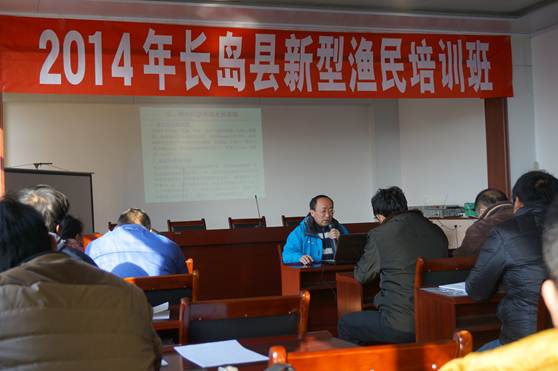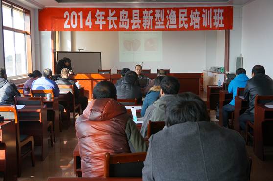 12月13-14日,由长岛县海洋与渔业局主办的“2014年长岛县新型渔民培训班”先后在长岛县大钦岛乡和砣矶岛乡举办。来自两乡所辖各村的养殖业者近80人参加了技术培训。国家鲆鲽类、贝类产业技术体系岗位科学家,黄海水产研究所关长涛和王崇明两位研究员应邀在培训班上授课。