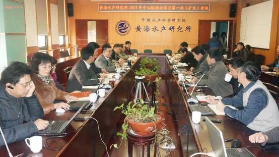 2月15日上午,黄海水产研究所召开党委理论中心组学习2014年第一次(扩大)会议,传达学习中央一号文件、中央农村工作会议、全国农业工作会议和全国渔业渔政电视电话会议精神,国务院有关深化种业体制改革、提高创新能力的意见以及中纪委十八届三中全会精神,并就学习内容进行了讨论?;嵋橛苫坪Kそ鹣允酥鞒?,黄海所领导班子成员、各部门负责人和支部书记参加了会议。