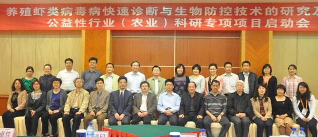 4月9日,由黄海所联合国内9家科研院所和高校共同承担的农业部公益性行业(农业)科研专项项目 “养殖虾类病毒病快速诊断与生物防控技术的研究及示范”在广东省湛江市召开了项目启动会议。项目承担单位的专家、学者及国内部分对虾养殖龙头企业的代表参加了会议,黄海所所长王清印到会并致辞。