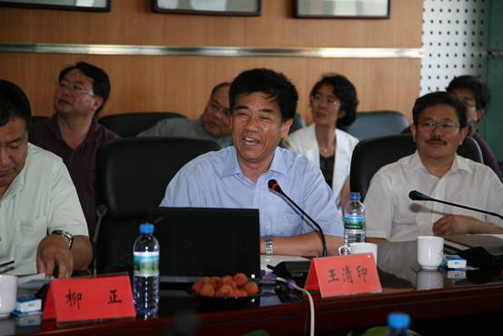 王清印所长在汇报中回顾了宋健副主席在任国务委员期间,先后于1988年8月、1996年7月两次视察黄海所的情景,指出宋健副主席每次到黄海所视察都对全所的发展起到了重要的推动作用,并介绍了黄海所的历史沿革、机构设置、人才培养、主要研究方向与学科发展、科研条件平台建设、取得的重大科研成果以及发展目标等情况。