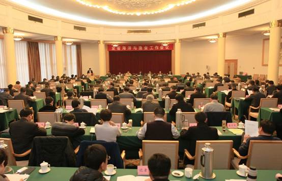1月21日,山东省海洋与渔业工作会议在济南召开?;坪K芯克彼だ罱∮ρ隽颂馕肮步ā鞔葱隆际跗教?培育‘海上粮仓’主导产业”的典型发言。