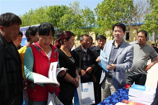 黄海所专家在启动仪式现场发放技术手册并解答渔民疑问