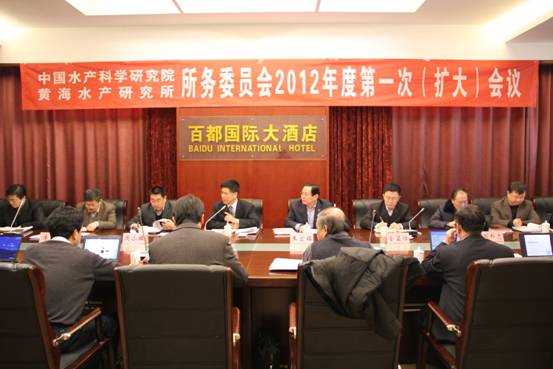 2月18-20日,黄海水产研究所务委员会2012年度第一次(扩大)会议在烟台莱州市召开。所务委员会全体成员,各支部书记以及研究生办公室、离退休工作办公室、基建办公室、海洋渔业科学研究中心、水产遗传育种中心、鲆鲽鱼类遗传育种中心、农业部重点实验室、财务主管和企业负责人参加了会议。烟台莱州市副市长王宏铭、市海洋与渔业局局长周小麟出席会议的开幕式并致辞?;嵋橛伤斓悸至髦鞒?。