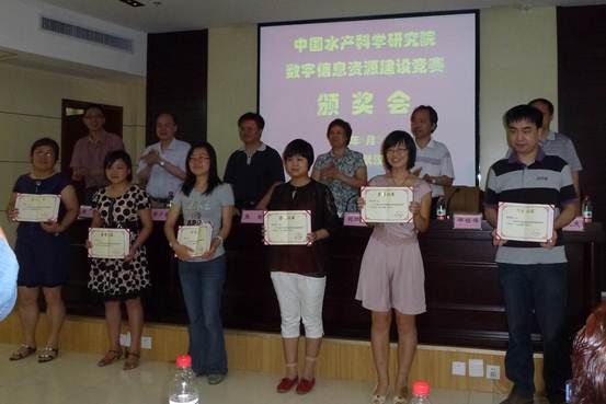 2012年3月至5月间,中国水产科学研究院在全院范围内组织开展数字信息资源建设竞赛,共有380多个团队及个人参加了该项活动,其中黄海所共有133人参加竞赛。经过全院报名动员、建馆培训、中期经验交流、专家评审等阶段,黄海水产研究所获优秀组织奖,食品工程与营养研究室获团队三等奖,常青研究员获个人三等奖,李萱等6人获个人优秀奖。
