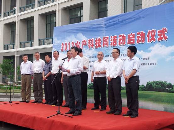 5月15日,中国水产学会、淡水渔业研究中心、黄海水产研究所在江苏无锡市联合举办了“2013水产科技周”启动仪式。中国科协农村专业技术服务中心主任张晓军、中国水产学会秘书长司徒建通、农业部渔业局科技处副处长王雪光、江苏省海洋与渔业局副局长沈毅、淡水渔业研究中心主任徐跑、黄海水产研究所副所长李健等出席仪式并致辞。