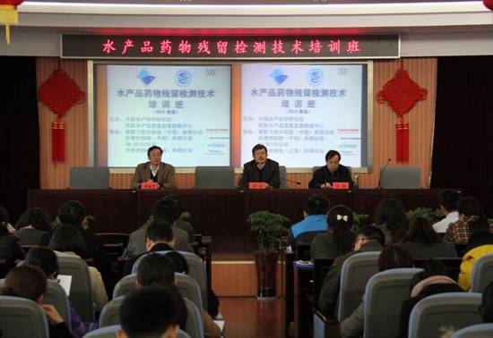 本期培训班主要针对近年来我国水产品质量安全监控工作,特别是政府指令性工作检查中出现的问题,探讨解决方法,以提升检测人员技术水平,提高大型仪器设备的使用能力?;嵘希醋怨宜分柿考喽郊煅橹行牡鹊ノ坏?名专家分别从国内外政策法规、相关检验方法比对、前处理过程优化、过程质量控制、数据处理及结果判定等方面,对水产品中氯霉素、硝基呋喃、孔雀石绿及甲基睾丸酮等药物残留检测的7类方法进行了宣贯和培训。