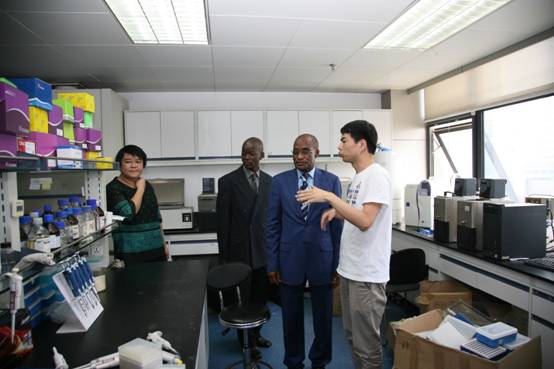 座谈后,在辛福言副所长的陪同下,贝尔纳部长一行参观了水产基因组与细胞工程研究室,并与有关专家进行了交流。