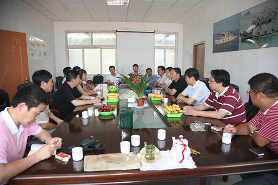7月25日,黄海水产研究所组织建造单位、设计单位、监理单位以及本所科研和管理部门有关领导和专家在青岛格时达船业股份有限公司对承建的农业部黄渤海渔业资源环境重点野外科学观测试验站建造项目——“黄海星”号海上流动采样监护艇进行竣工验收。副所长殷邦忠、赵宪勇出席了验收会。