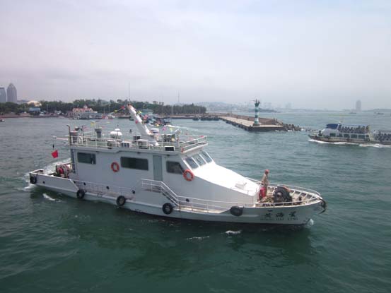 “黄海星”号海上流动采样监护艇是黄渤海渔业资源环境重点野外科学观试验站建设项目的重要组成部分。该船从去年10月份开始建造,今年6月份建成下水。船体采用钢制材料,船长23.5米,航速10节,定员10人,航区属于沿海海域,该船配有小型拖网和探鱼设备,可以到“北斗”号船无法进入的浅水海域从事渔业科学调查研究,为深入开展黄渤海沿岸渔业资源、环境调查研究提供重要支撑,为区域渔业经济建设提供良好的共享平台。