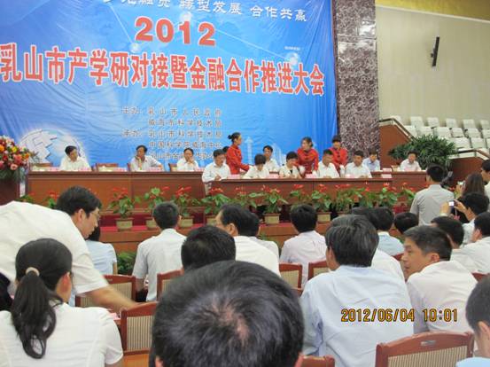 6月3日上午,2012乳山市产学研对接暨金融合作推进大会在该市中心会议室隆重举行。山东省科技厅副厅长、青岛国家海洋科学研究中心主任李乃胜,威海市人民政府副市长徐连新,乳山市委书记高书良和市长隋建波等领导出席了会议。中国工程院院士麦康森等30多家大学和科研院所的80多位专家应邀参加了会议。