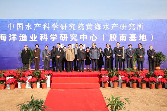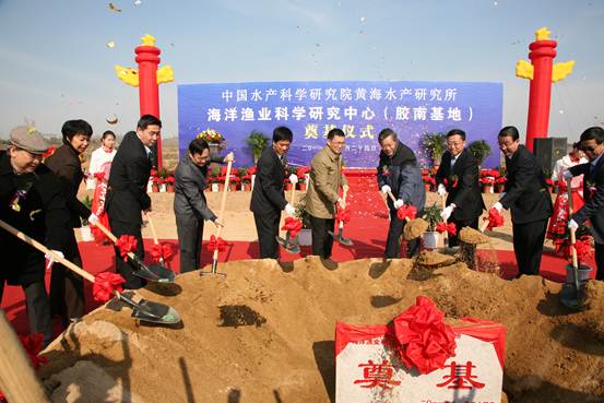 11月24日,黄海水产研究所海洋渔业科学研究中心奠基仪式在青岛胶南市隆重举行。中国科协副主席、中国工程院院士唐启升,农业部市场与经济信息司司长张合成,农业部渔业局计财处处长董金和,山东省农业厅副厅长高明飞,青岛市人民政府副秘书长于成璞,青岛市农业委员会主任赵泽斌等有关单位领导,中国水产科学研究院院长张显良、副院长刘晴,胶南市人民政府市长姜军建、副市长张新竹以及有关单位领导,黄海所赵法箴院士、雷霁霖院士以及中层以上干部、老专家代表共130余人参加了奠基仪式。仪式由黄海所殷邦忠副所长主持。