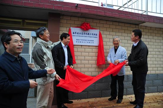 5月29日,黄海水产研究所碳汇渔业实验室---海草床生态系统碳汇观测站揭牌仪式在桑沟湾楮岛举行。中国工程院原副院长沈国舫院士、中国科协副主席唐启升院士,农业部渔业局副局长李书民、中国水产科学研究院副院长刘晴、山东省海洋渔业厅副厅长姜清春、荣成市委副书记王笑丰等领导、专家出席了揭牌仪式,并乘船考察楮岛海草床与多营养层次综合养殖实验区。
