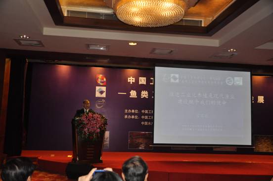 第十届全国人大常委会副委员长蒋正华作了题为“推进产业转型升级 建设现代化渔业”的重要报告;农业部赵兴武局长、张合成司长、张国良处长和中山大学林浩然院士应邀分别从我国渔业产业需求、水产品市场流通体系建设、现代农业产业技术体系工作思路、生物工程技术在海洋水产养殖业中的应用等方面做了主题报告。