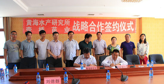 近日,黄海水产研究所与大连壹桥海洋苗业股份有限公司在大连壹桥海洋科技研发中心正式签署“良种繁育与高效生态养殖技术开发所企战略合作协议书”?;坪K彼だ罱∫恍?人出席签约仪式,并为产学研合作基地揭牌。